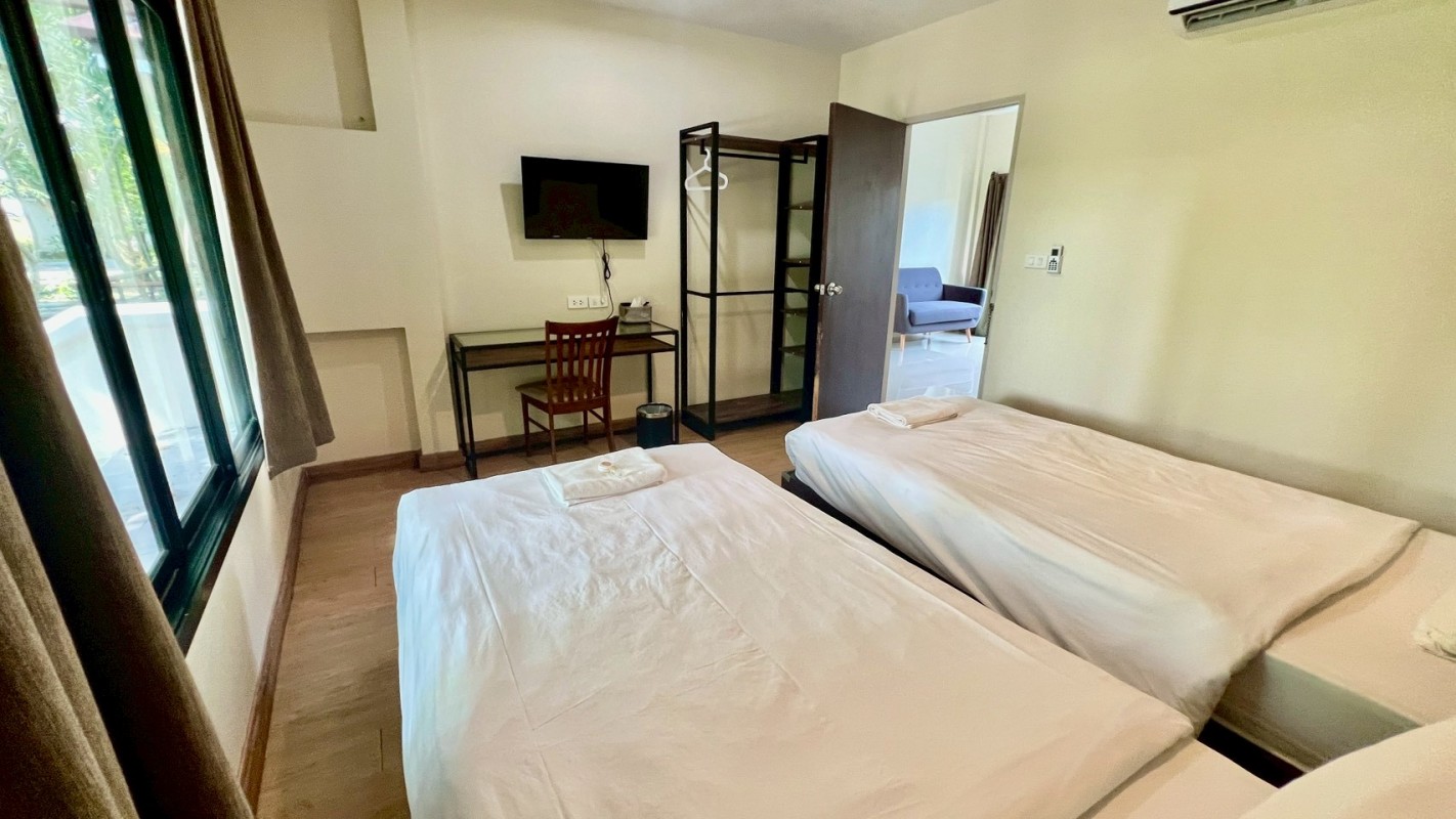 มีสิ่งอำนวยความสะดวกครบครัน เช่น ทีวี WiFi เครื่องปรับอากาศ ตู้เย็น และเครื่องทำน้ำอุ่น ที่สำคัญที่นี่
